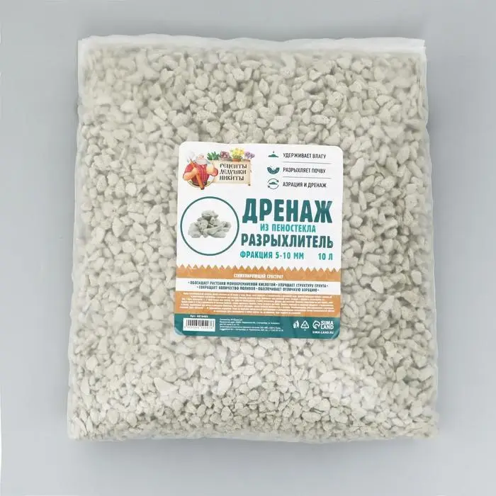 Дренаж и разрыхлитель из пеностекла «Рецепты Дедушки Никиты» фр 5-10 мм, 10 л