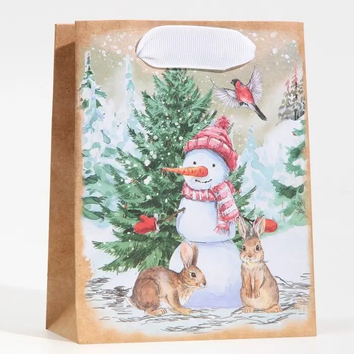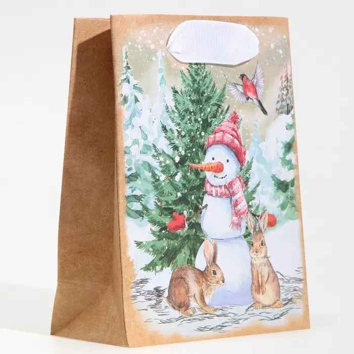 Пакет подарочный новогодний крафтовый «Заснеженный лес», S 12 х 15 х 5.5 см