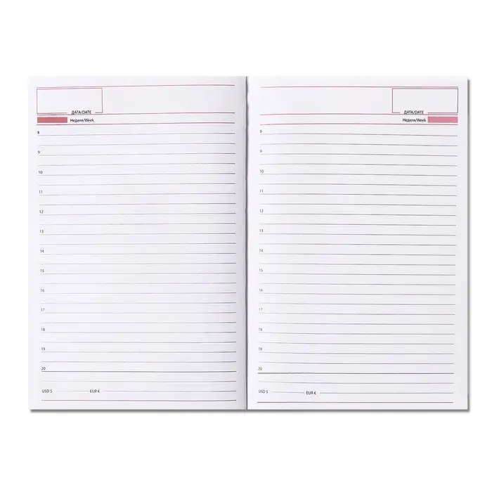 Недатированный ежедневник вы сами проставляете даты своих дел. Вам не обязательно прописывать в нем каждый день, вы можете использовать эти дни для дополнительных записей и примечаний к тем дням, в которые у вас все довольно плотно забито.