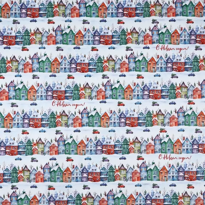 Упаковочная бумага на новый год крафтовая «Новогодние дома», 70 х 100 см