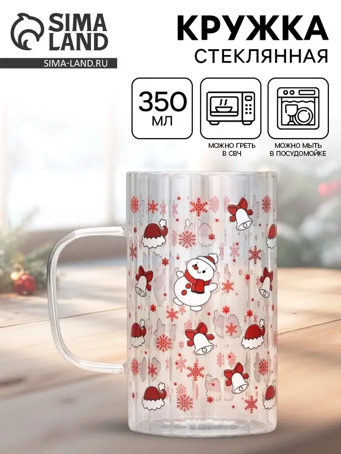 Кружка новогодняя стеклянная «Новый год», 350 мл