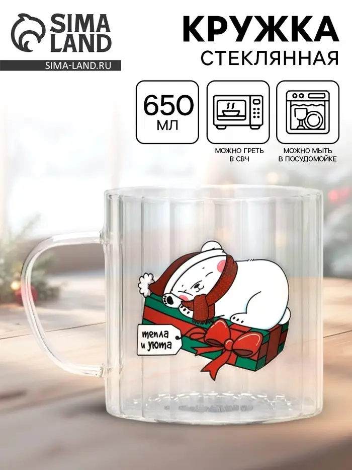 Кружка новогодняя стеклянная «Тепла и уюта», 650 мл