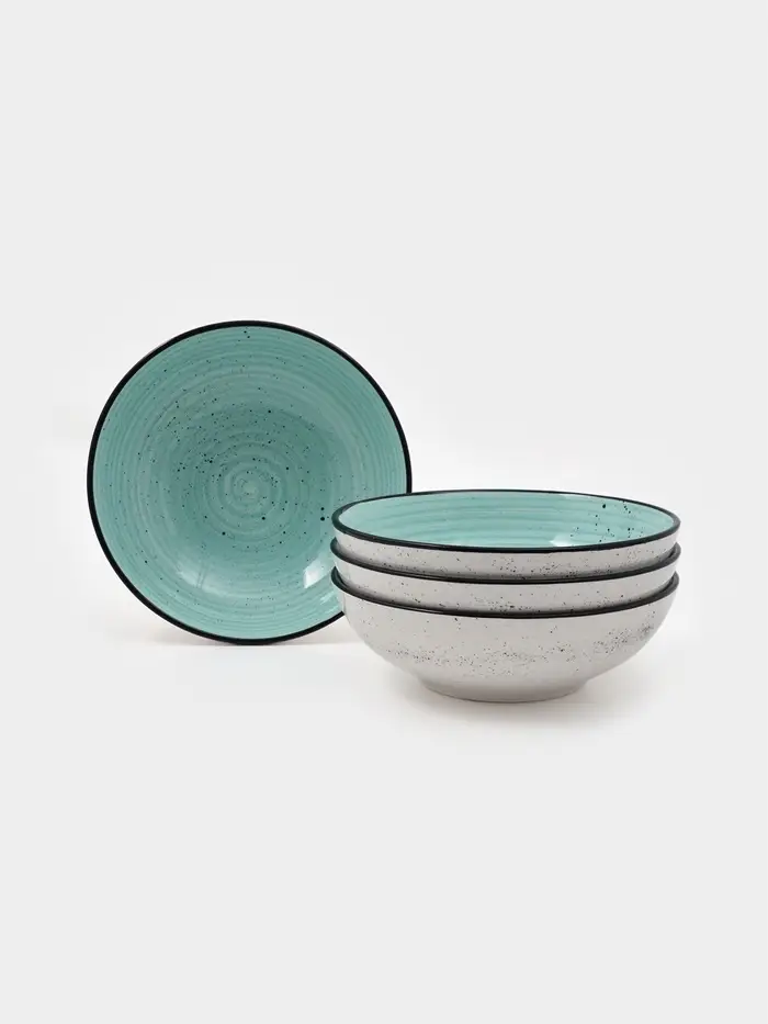 Набор тарелок глубоких 4 шт Доляна "Nature" 18 см голубой в крапинку