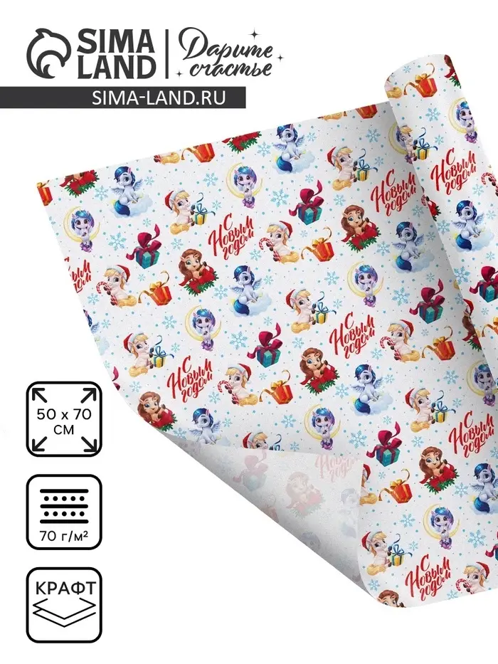 Бумага упаковочная крафтовая «Кони», 50×70 см