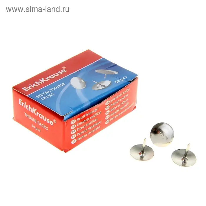Кнопки канцелярские ErichKrause, никелированные 12 мм, 50 штук