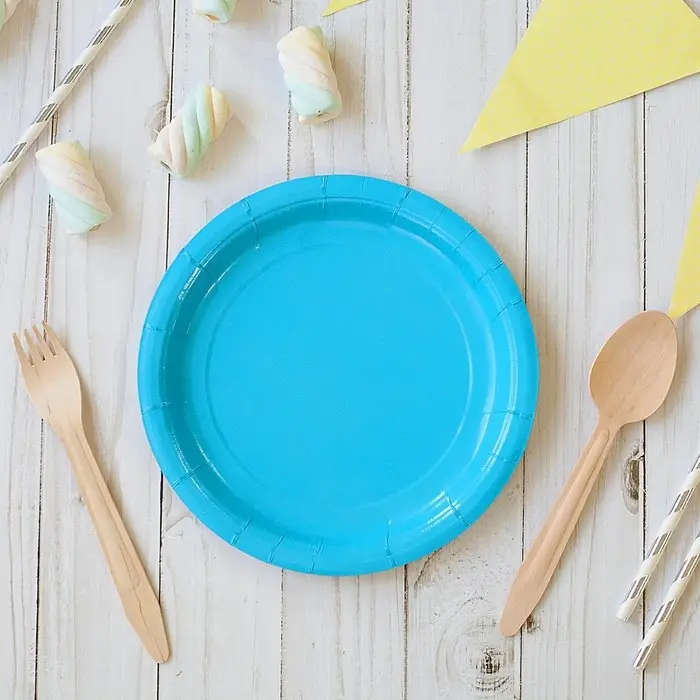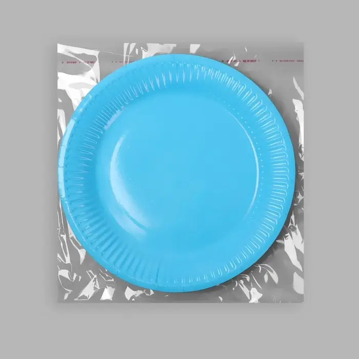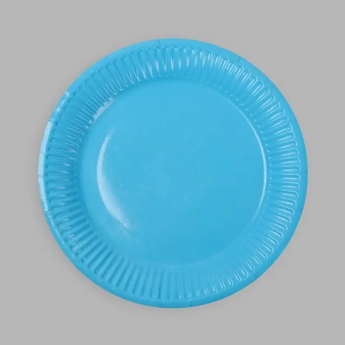 Тарелка одноразовая бумажная однотонная, голубая, 18 см