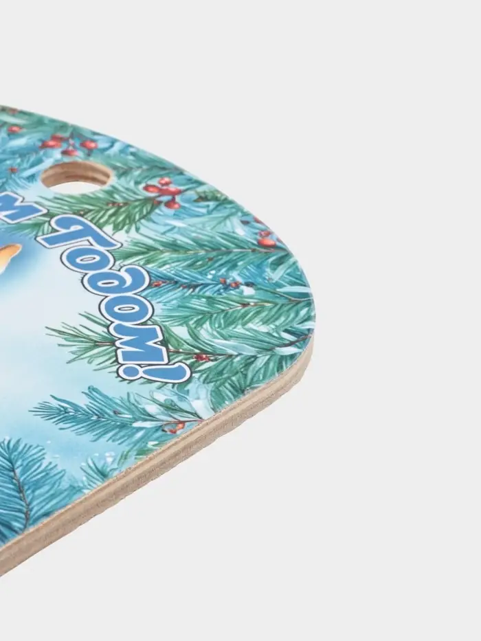 Разделочная доска «С Новым годом! Кролики» — это лёгкий, добрый акцент праздничного настроения на кухне. На ней изображены новогодние кролики в уютной зимней сценке: они будто только что пришли с прогулки по заснеженному саду, неся с собой тепло и спокойствие. Доска подойдёт для нарезки сыра, фруктов или овощей к праздничному столу, а после — легко превратится в украшение: её можно повесить на стену или дверцу шкафчика, чтобы сохранить атмосферу праздника.