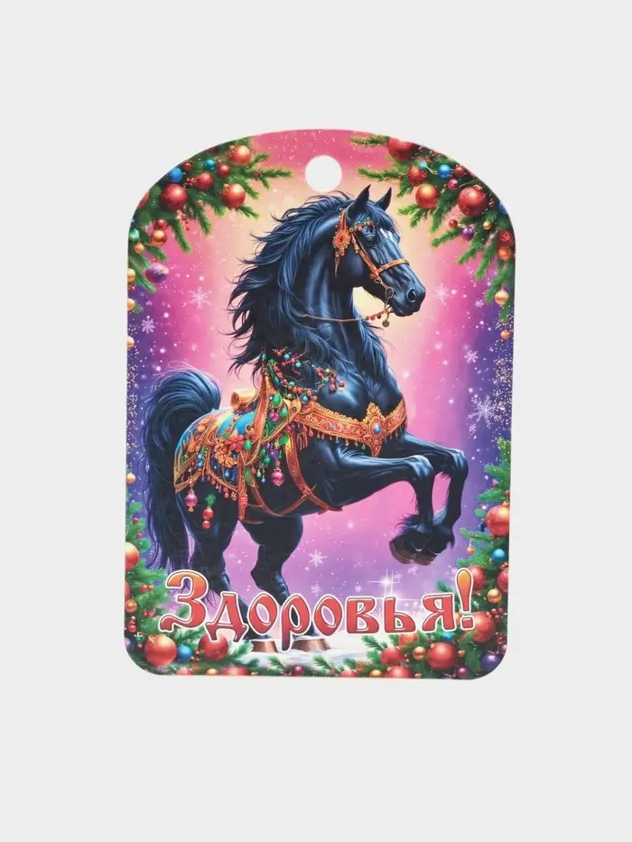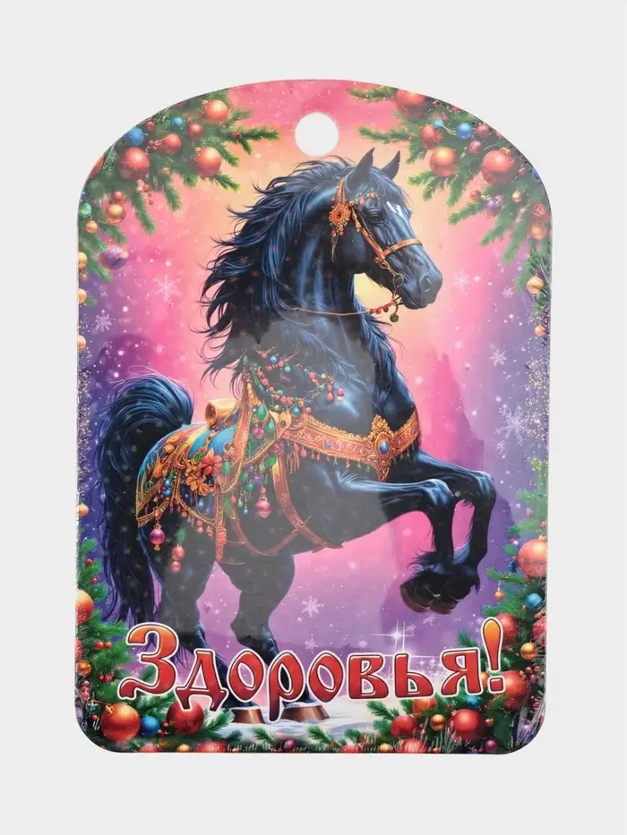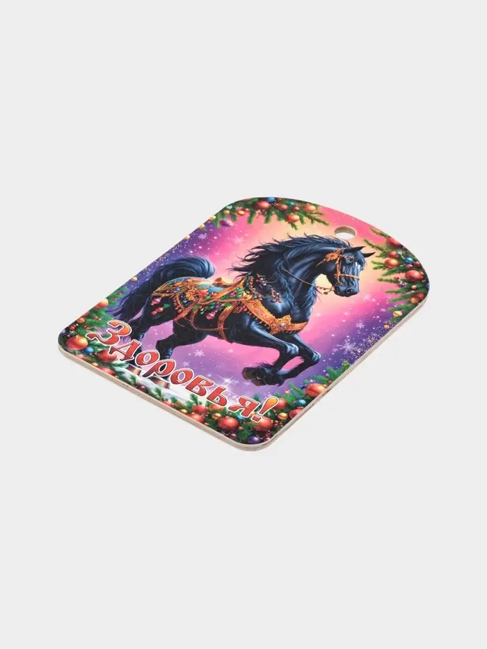 Разделочная доска «Символ 2026 года: Лошадь. Здоровья!» — это практичный новогодний сувенир с искренним пожеланием, которое особенно ценно в начале нового цикла. На деревянной поверхности — изображение лошади, символа 2026 года, в праздничном оформлении и с тёплой надписью ”Здоровья!“. Доска подойдёт для нарезки сыра, овощей или фруктов к праздничному столу, а после легко превратится в украшение: её можно повесить на стену или дверцу кухонного шкафа, чтобы сохранить атмосферу заботы и уюта.