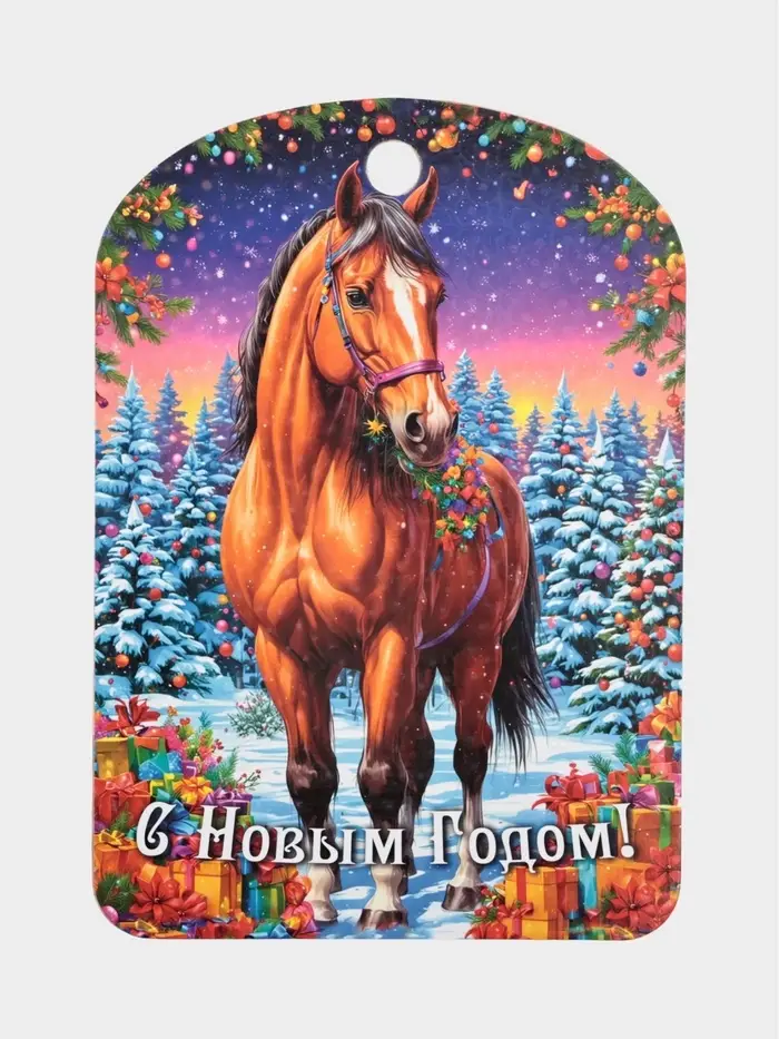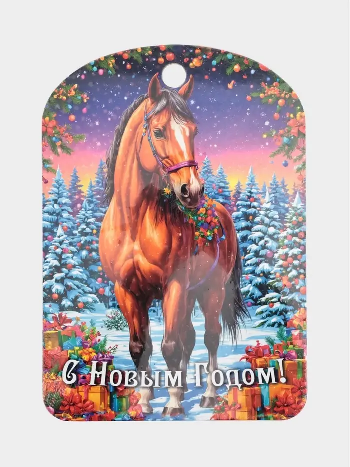 В восточной традиции лошадь — символ упорства, честности и стремления вперёд. Эта доска — не просто кухонный аксессуар, а мягкий напоминатель: новый год — время для обновления, даже в мелочах. Подарите её коллеге, другу или близким — пусть каждый взгляд на неё вдохновляет на хорошие дела и согревает простым, но важным пожеланием: ”С Новым годом!“.
