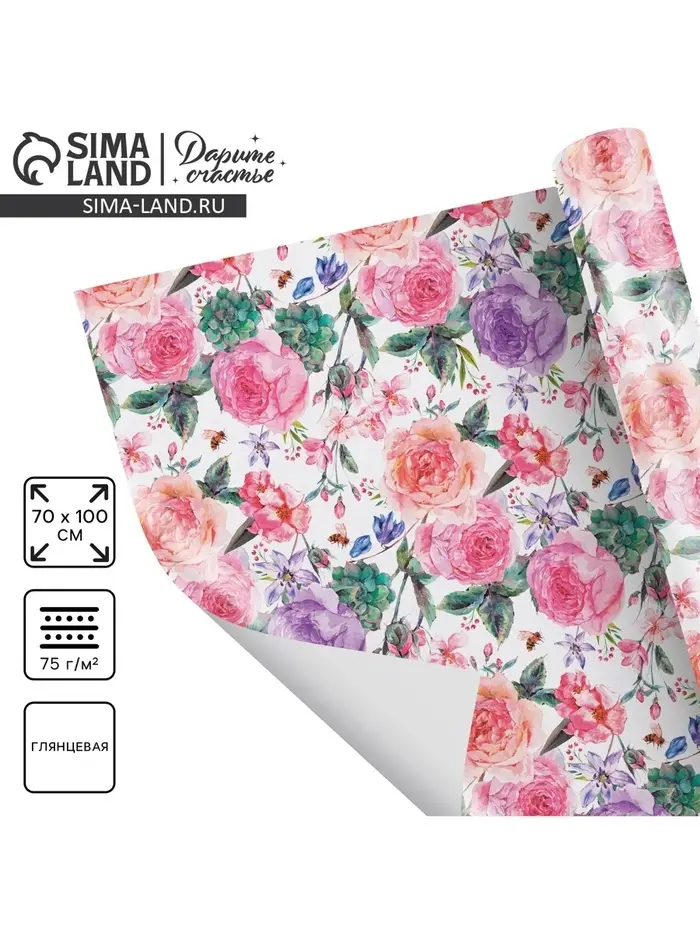 Бумага упаковочная глянцевая «Летние цветы», 70 х 100 см