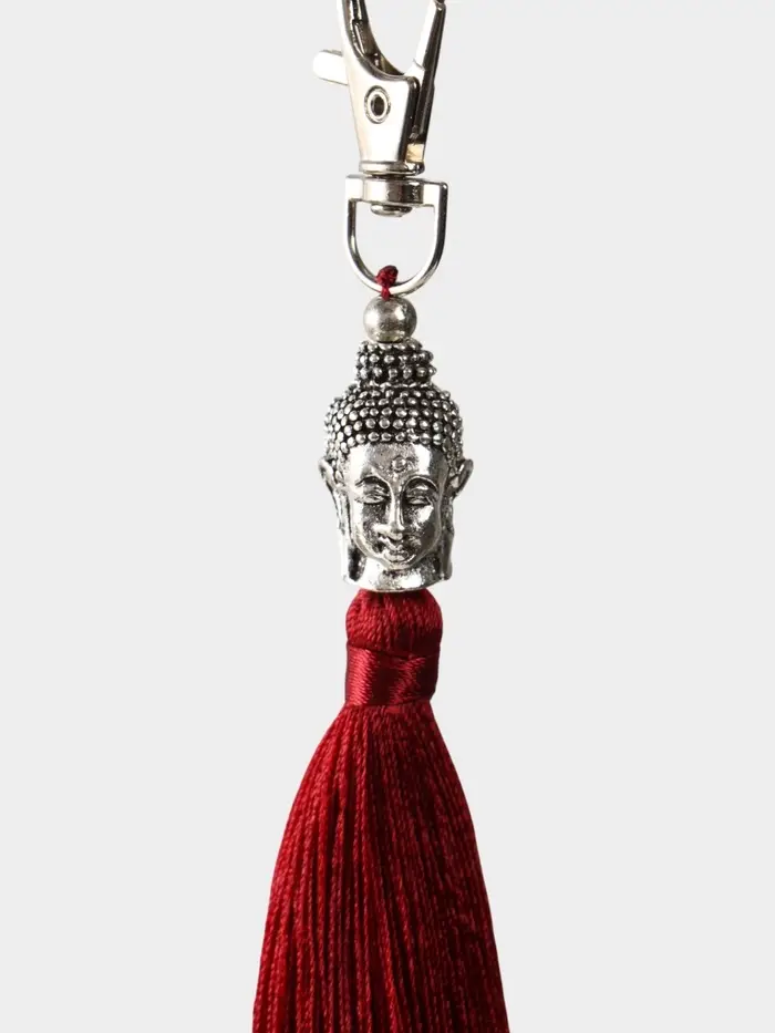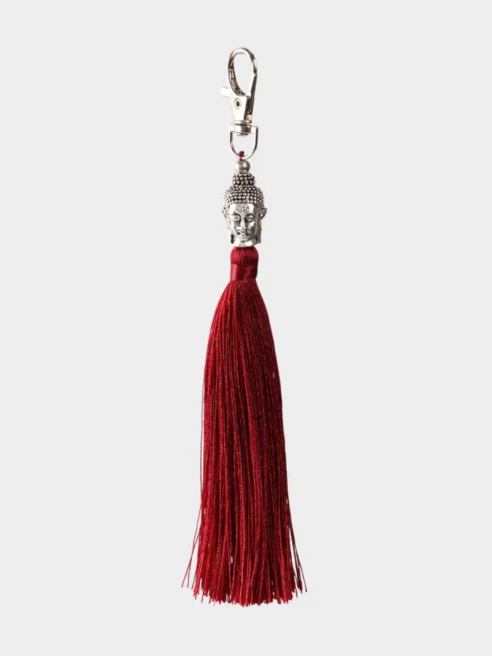 Брелок-кисточка "Будда" 17 см, цв. бордовый, серебристый