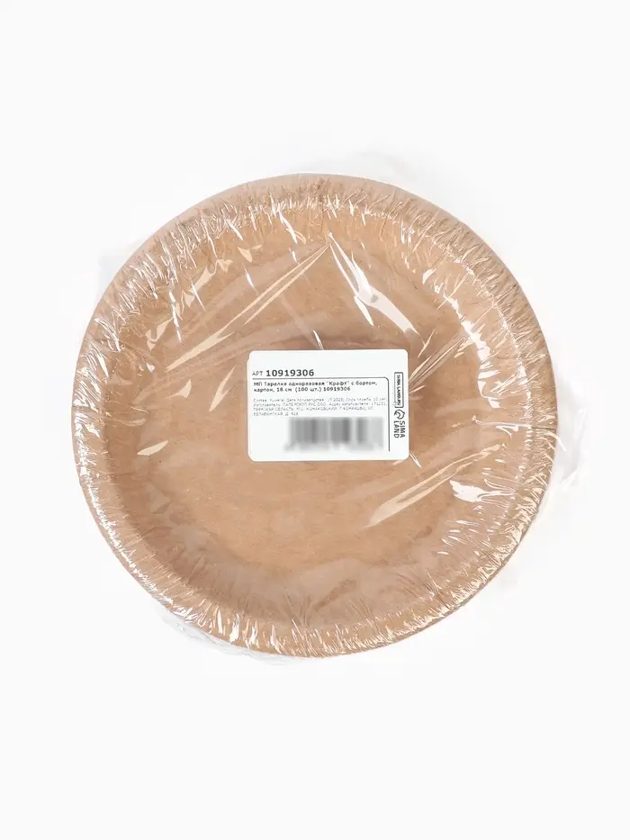 МП Тарелка одноразовая "Крафт" с бортом, картон, 18 см (100 шт.)