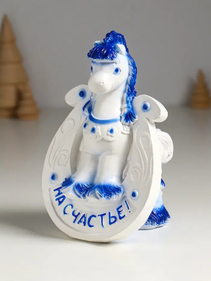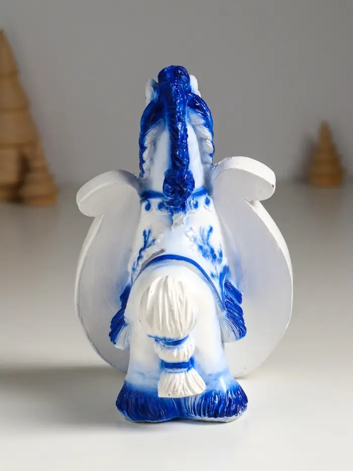 Копилка "Лошадь с подковой" 16х10,5х11 см, бело-голубой
