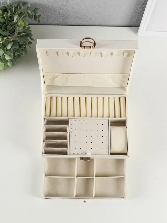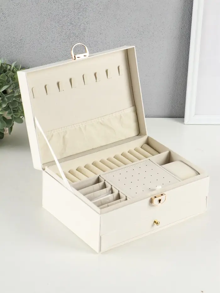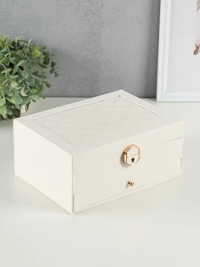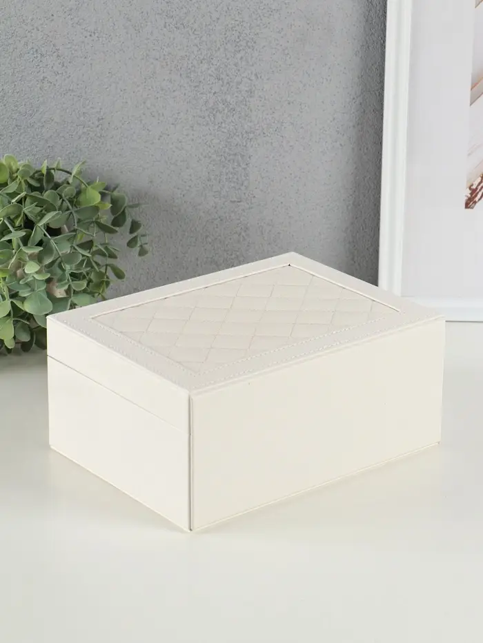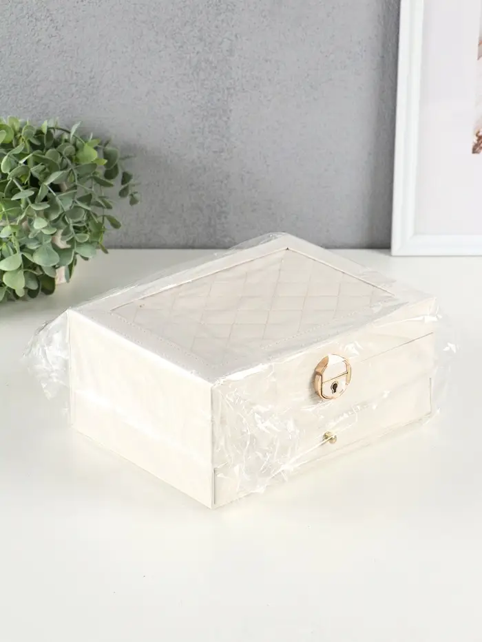 Шкатулка для украшений "Стёганная" 2 яруса, цвет белый, 17,5х23,5х10,5 см