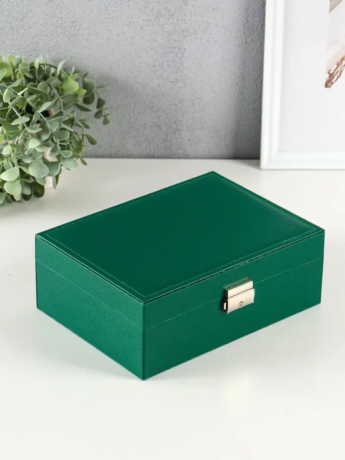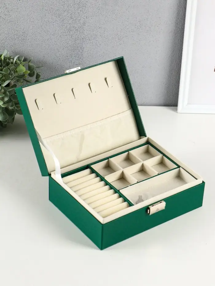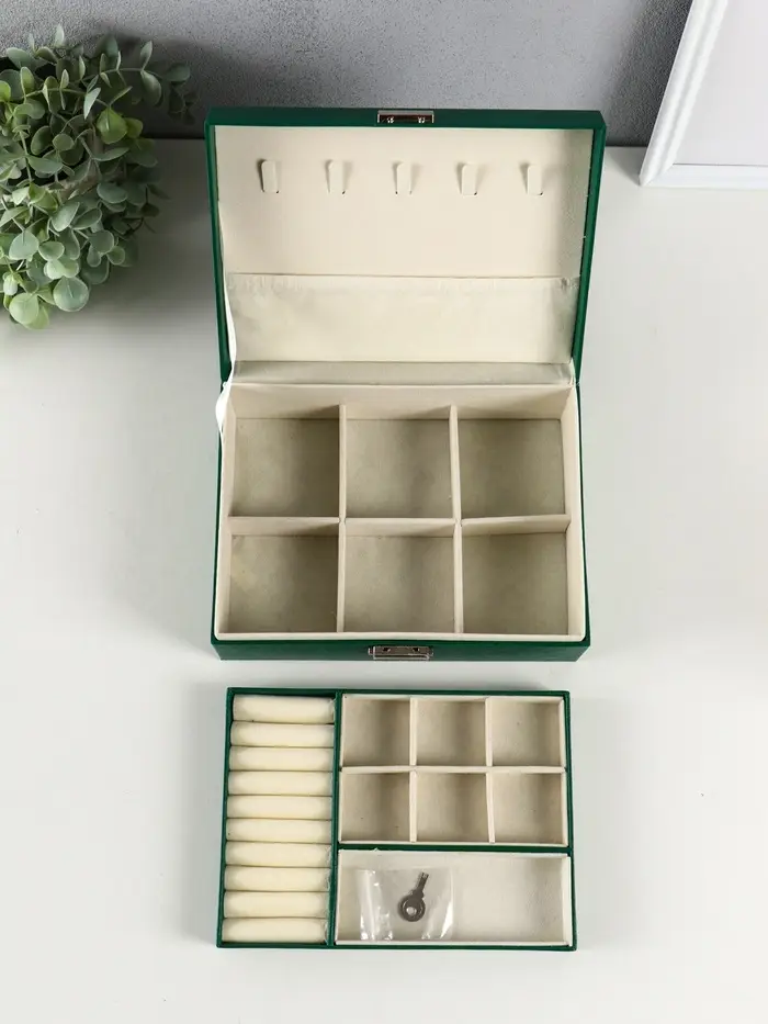 Шкатулка текстиль для украшений, съёмная подставка, цвет тёмно-зелёный, 23,5х17х8,7 см