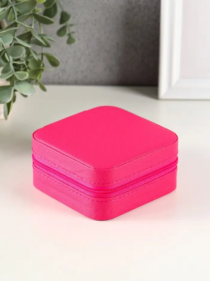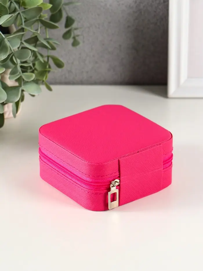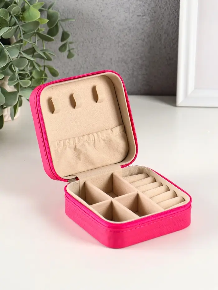 Шкатулка кожзам для украшений "Фуксия" 4 ячейки, 7 полос, 3 крючка 10х10х5 см