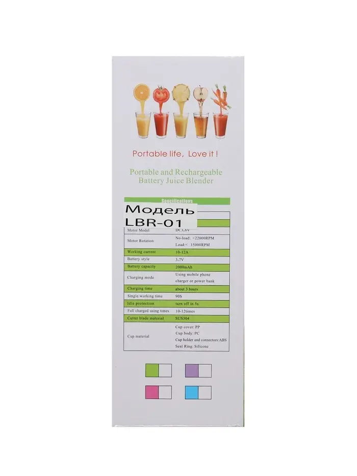 Портативный блендер LBR-01 объёмом 0,38 л и мощностью 24 Вт создан для тех, кто ценит свободу приготовления свежих напитков в любом месте. Фиолетовый корпус придаёт устройству современный вид, а USB-зарядка позволяет взять блендер с собой на прогулку, в офис или на дачу.