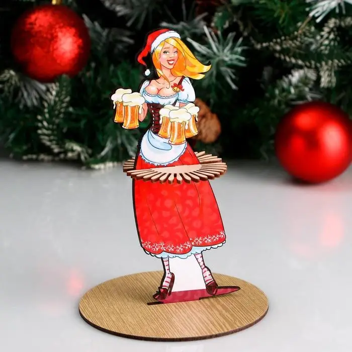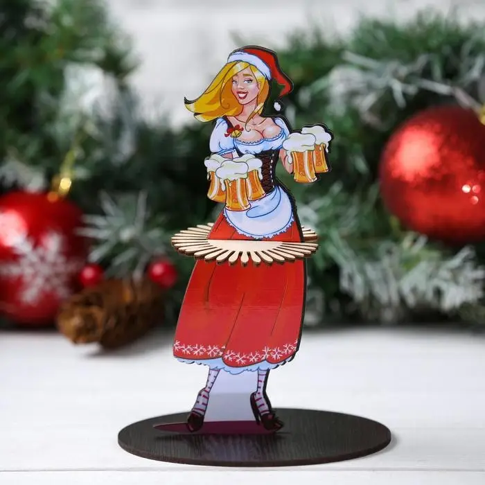Салфетница деревянная «Девушка официантка с пивом с косами», цветная наклейка