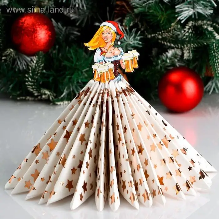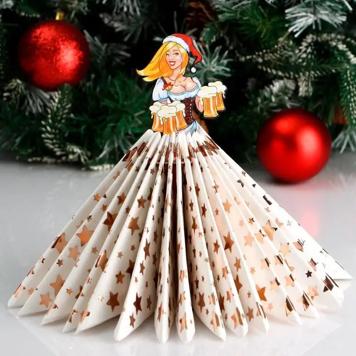 Салфетница "Девушка в новогоднем костюме с Бокалами", ДВУСТОРОННЯЯ наклейка, 20×13.5 см