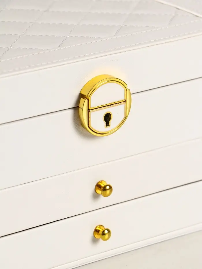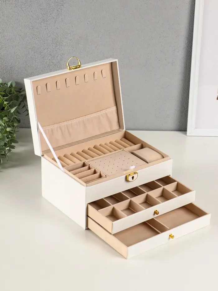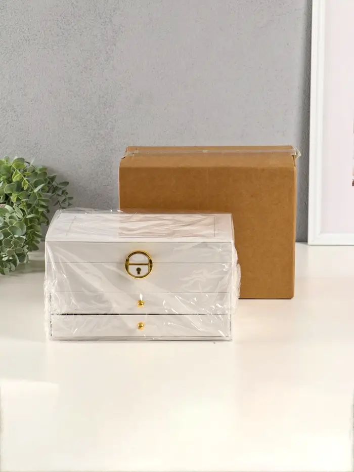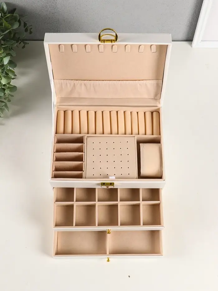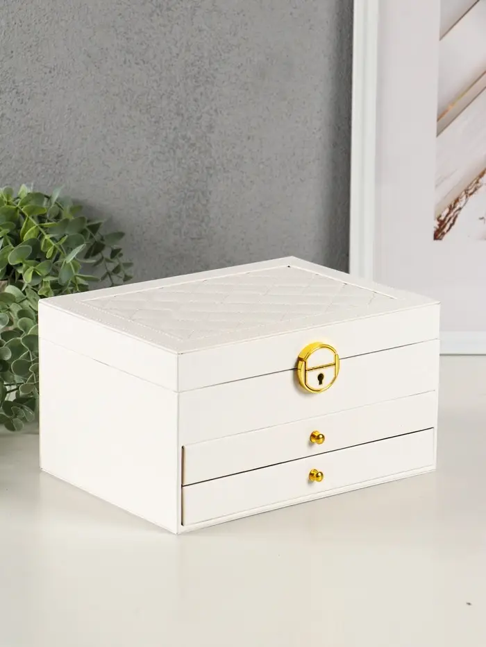 Шкатулка кожзам для украшений 3 яруса, цвет белый 23*17,5*13,5 см