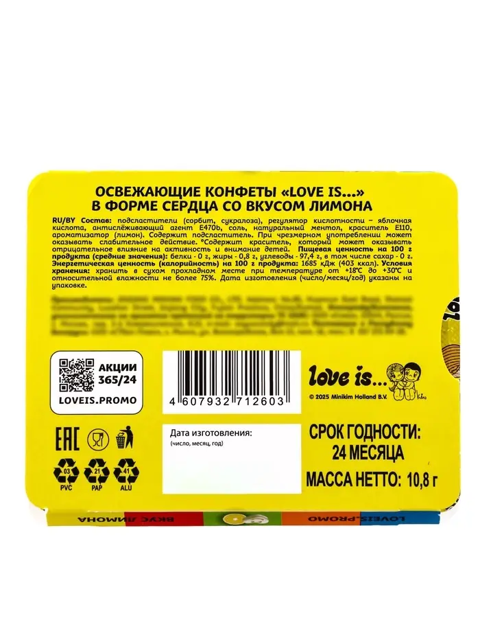 Освежающие конфеты Love is, со вкусом мяты в блистере, 10.8 г