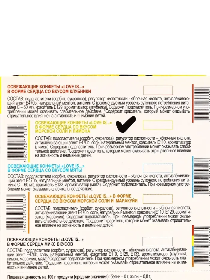 - Блистер защищает конфеты от влаги и сохраняет форму.