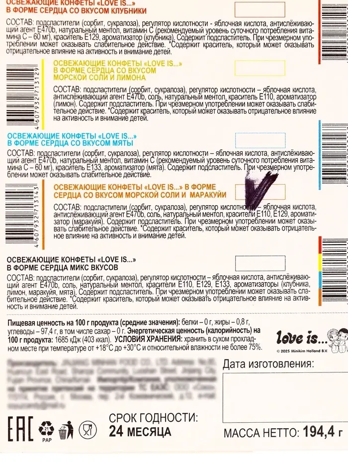 - Блистер защищает конфеты от повреждений и влаги.