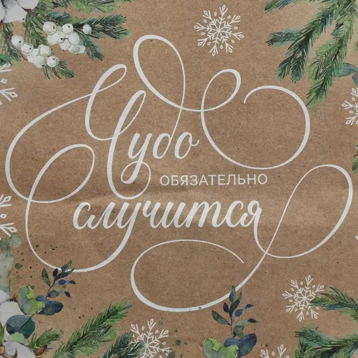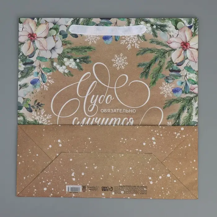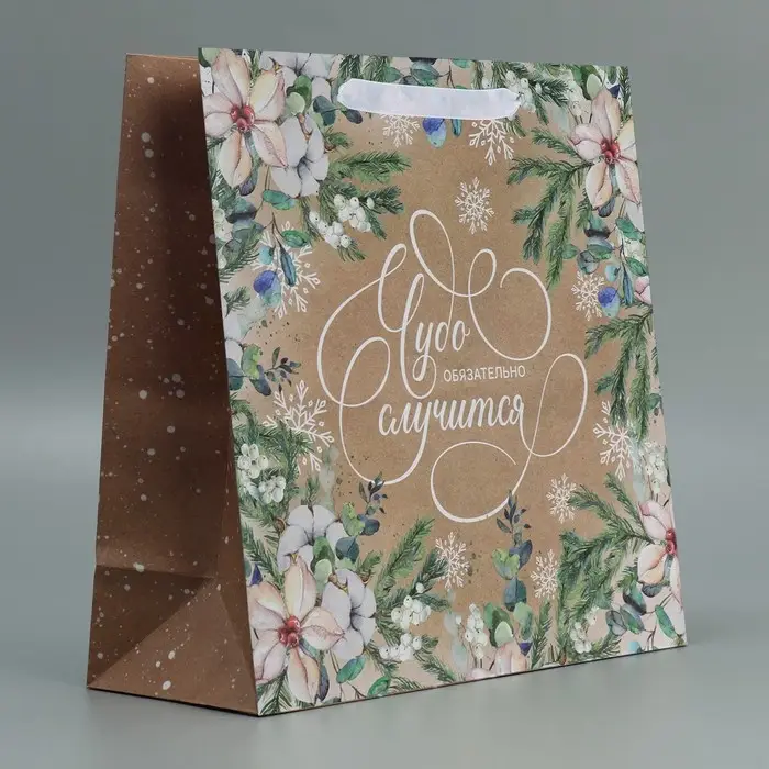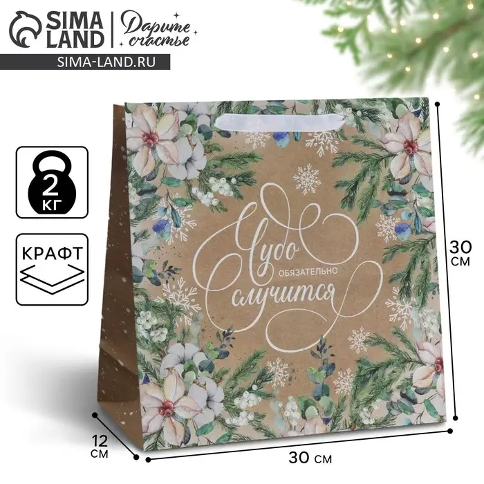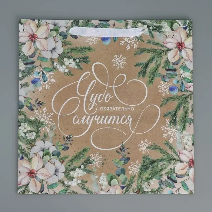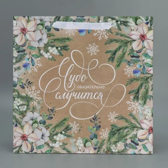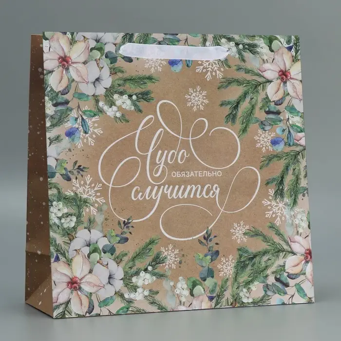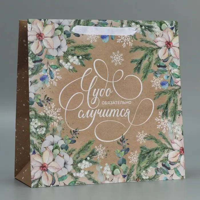 Пакет подарочный новогодний крафтовый квадратный «Чудо», 30×30×12 см