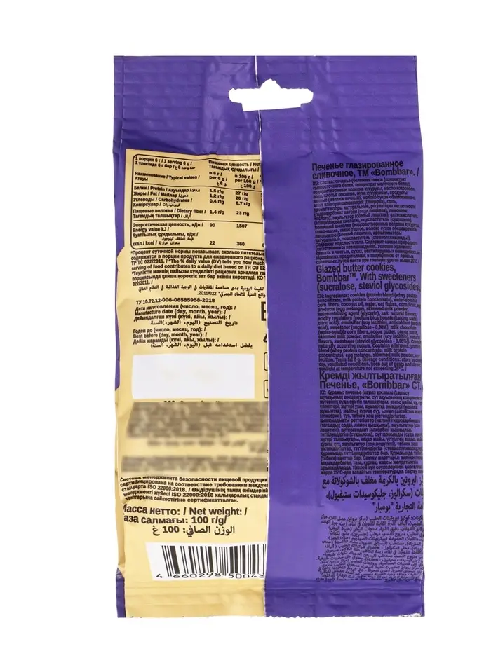 ТМ "BOMBBAR" Печенье глазированное сливочное 100 г