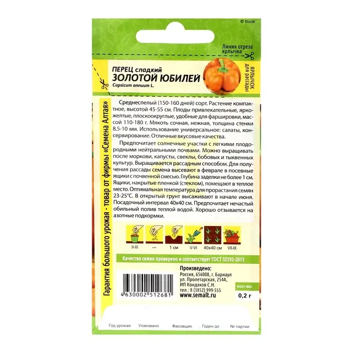 Семена Перец сладкий «Золотой Юбилей», 0.1 г, «Семена Алтая»