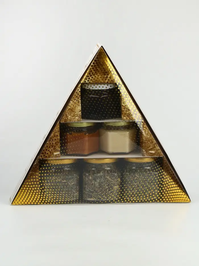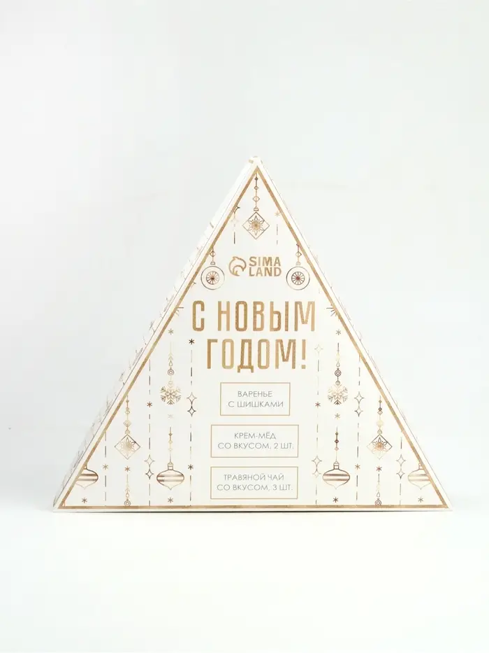 Подарочный набор новогодний «С Новым Годом» варенье с шишками, крем-мед 2 шт, чай в банке 3 шт 108
