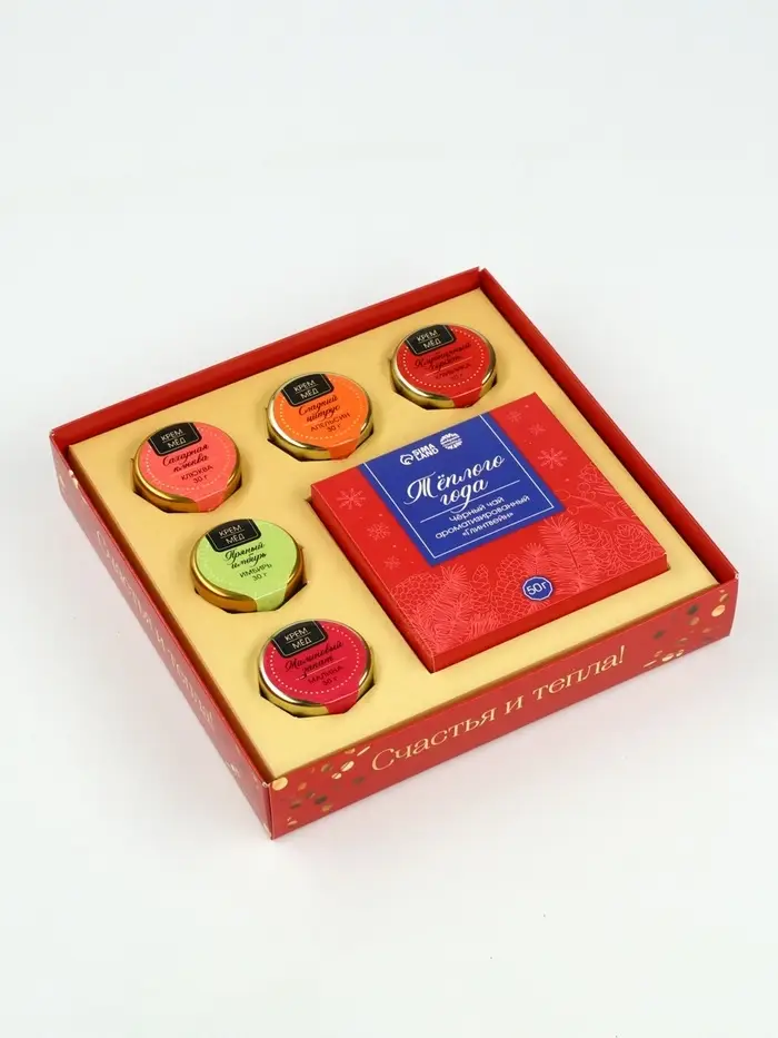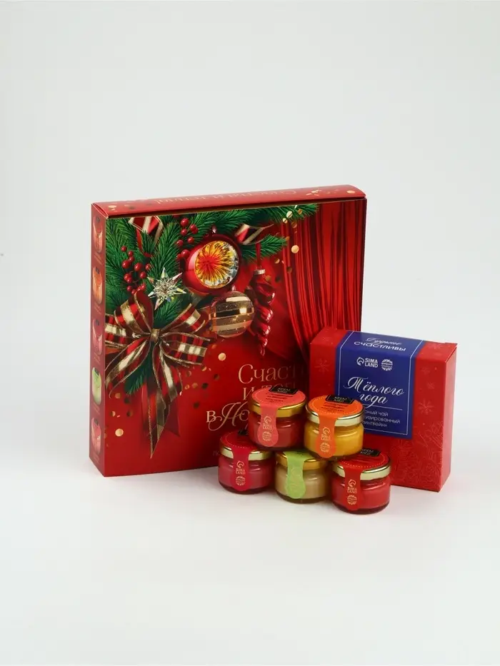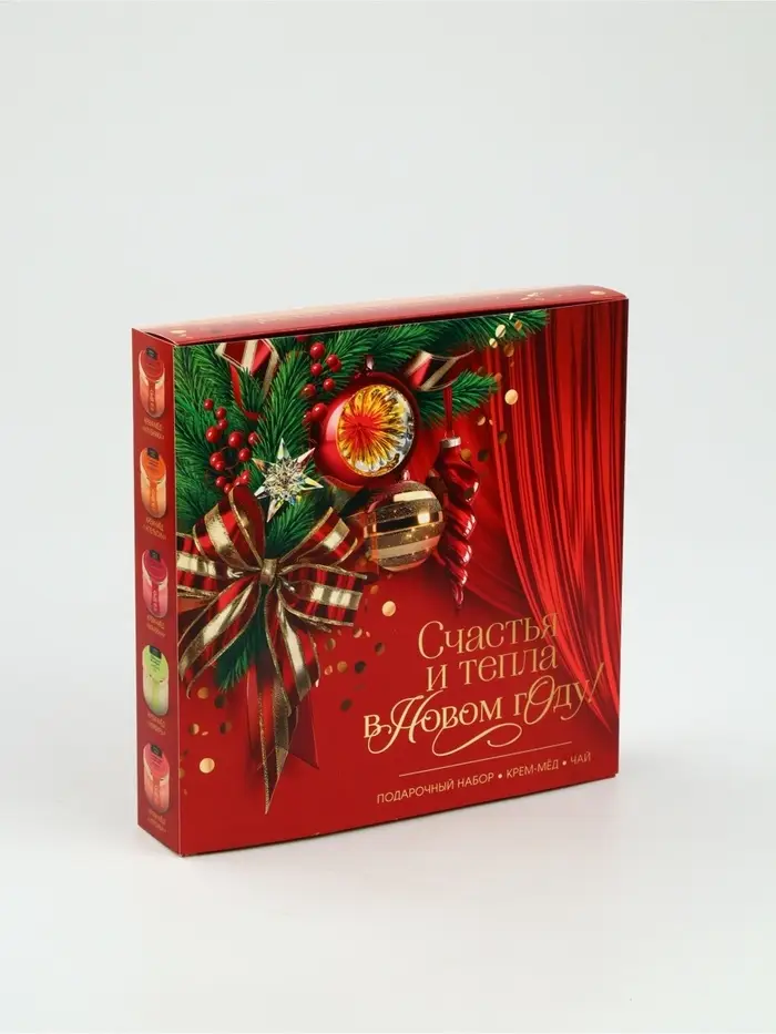 Подарочный набор "Счастья и тепла в новом году", мёд и чай