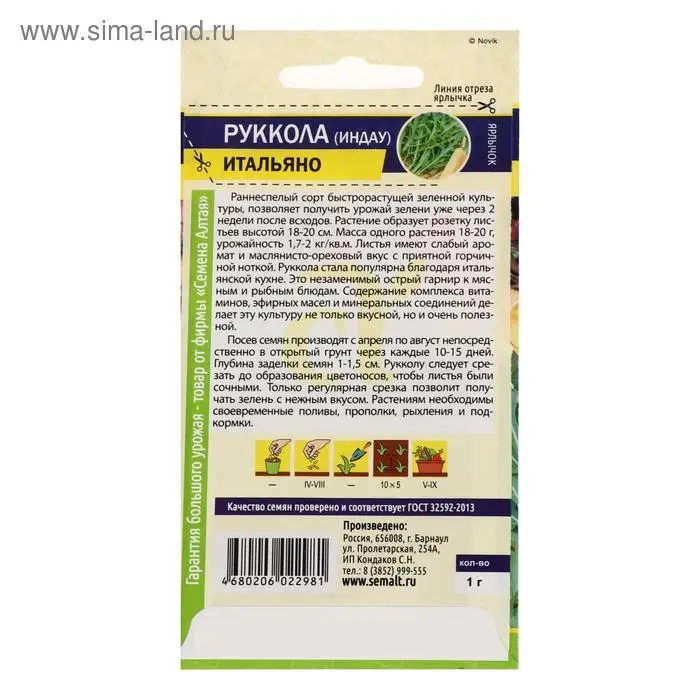 Семена Индау (Руккола) "Итальяно", ц/п, ц/п, 0,3 г