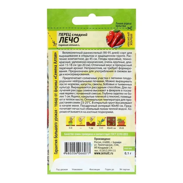 Семена Перец "Лечо", сладкий, крупноплодный, цп, 0,1 г