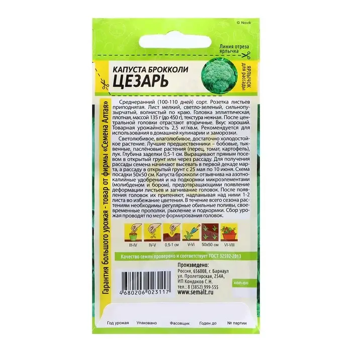 Семена Капуста "Брокколи Цезарь", ц/п, 0,3 гр.