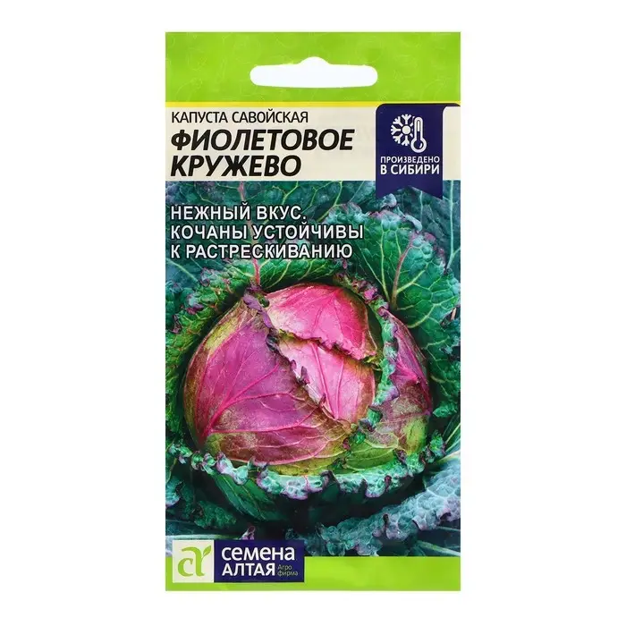 Высокоурожайный позднеспелый (150-170 дней) сорт. Кочаны крупные, твердые, плотные, слегка приплюснутые, зеленовато-фиолетовые, имеют нежную текстуру и прекрасные вкусовые качества. Используются в свежем виде в салатах, для приготовления первых и вторых блюд, является великолепной начинкой для выпечки. Сорт устойчив к растрескиванию, пригоден для непродолжительного хранения в течение 1 месяца.