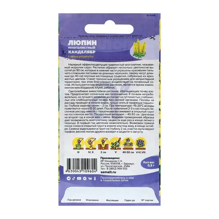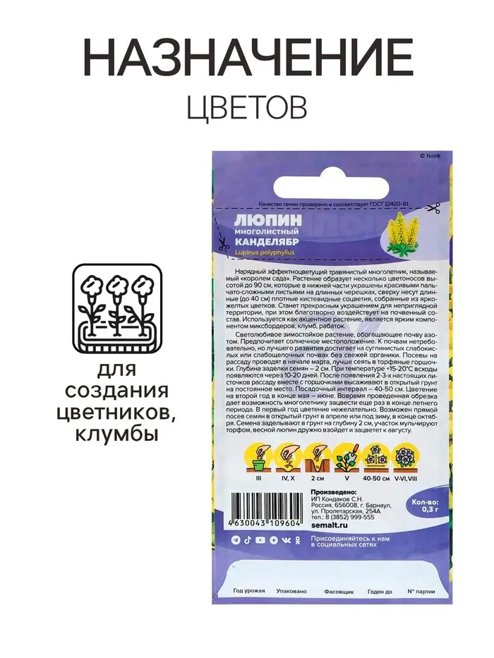 Семена Люпин "Канделябр", ц/п, 0,3 гр.