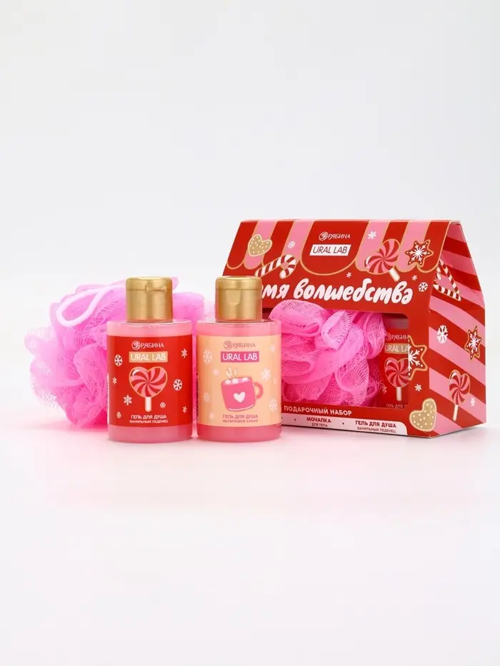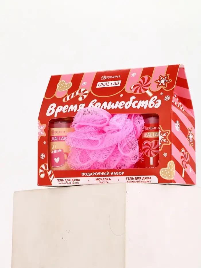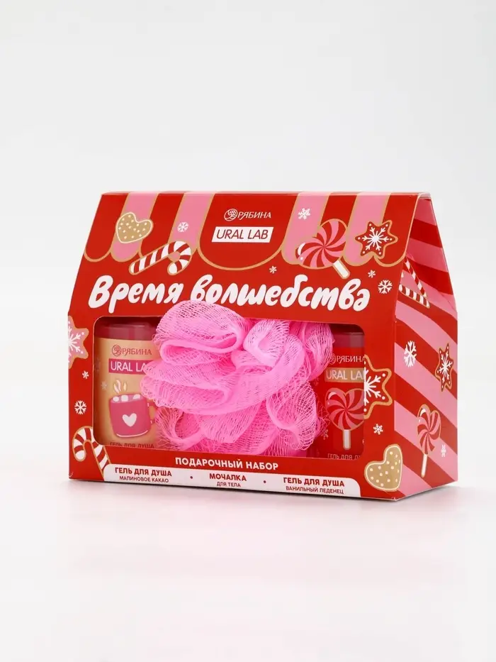 Подарочный набор новогодний «Время волшебства», гель для душа 2 шт и мочалка для тела, URAL LAB
