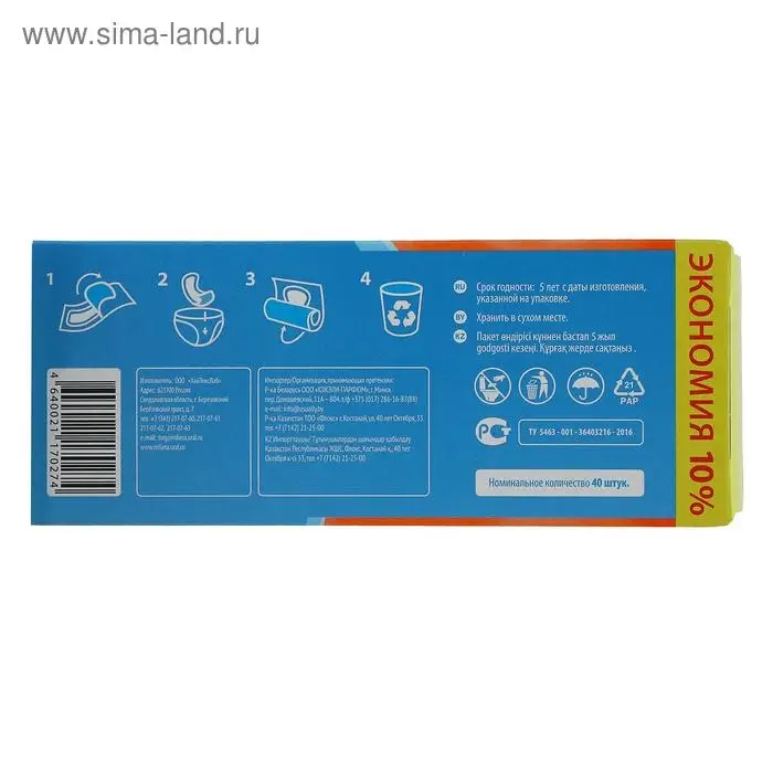 Прокладки анатомической формы, не сминаются при использовании. Нижний слой прокладок-защитная пленка.