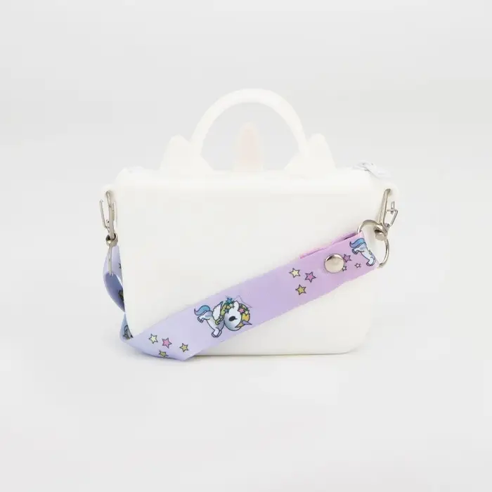 Эта белая детская сумочка через плечо станет верной спутницей вашей маленькой принцессы в её ежедневных приключениях. Нежный силиконовый материал приятен на ощупь, его легко чистить, а прочная молния надёжно хранит всё самое ценное.