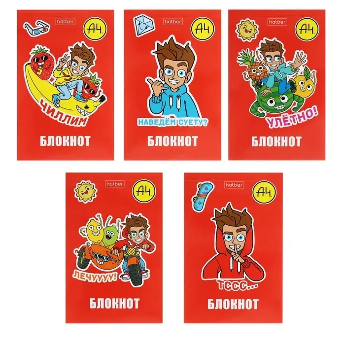Блокнот А7, 48 листов, в клетку, на склейке, "Влад А4", обложка мелованная бумага, ламинация, трёхцветный блок, блок 60 г/м², 5В МИКС