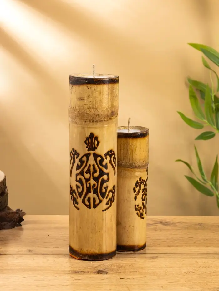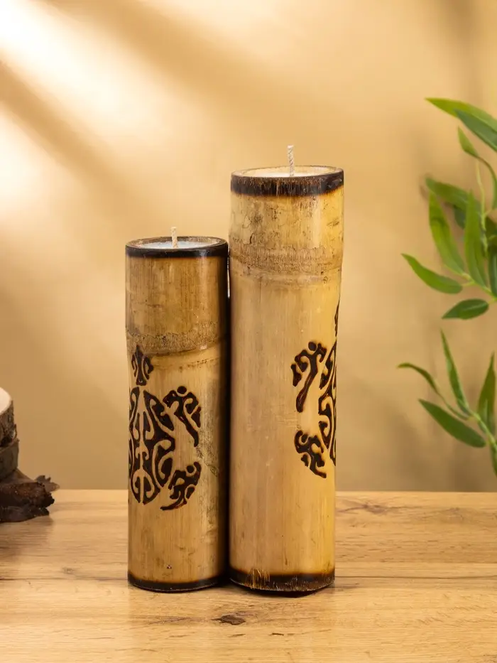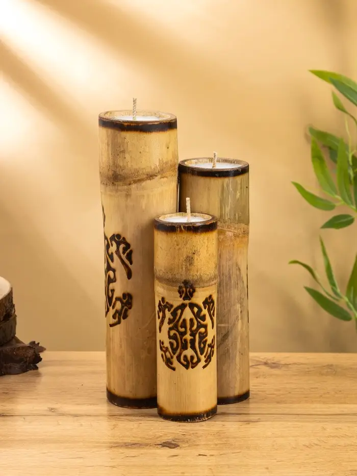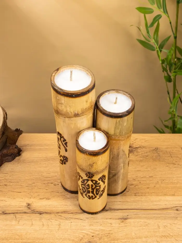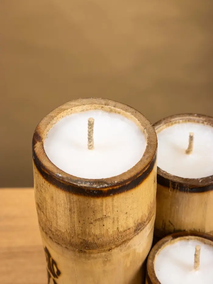 Свеча в бамбуке тройная «Экзотика», 13×15×30 см, 100 мл, бежевая