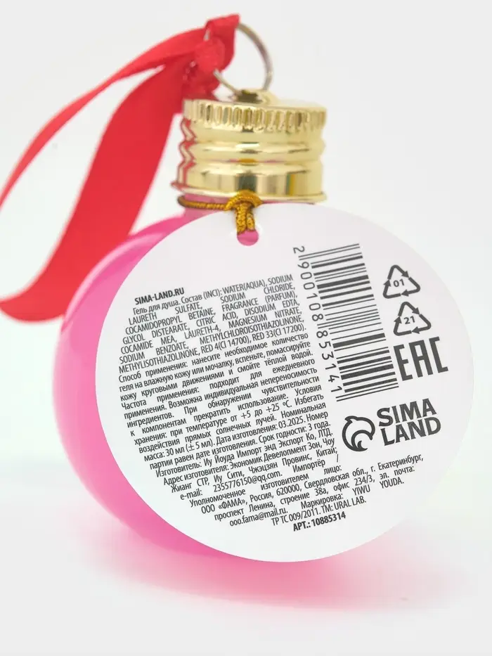 Гель для душа в форме ёлочного шара, 30 мл, аромат ванильный десерт,URAL LAB