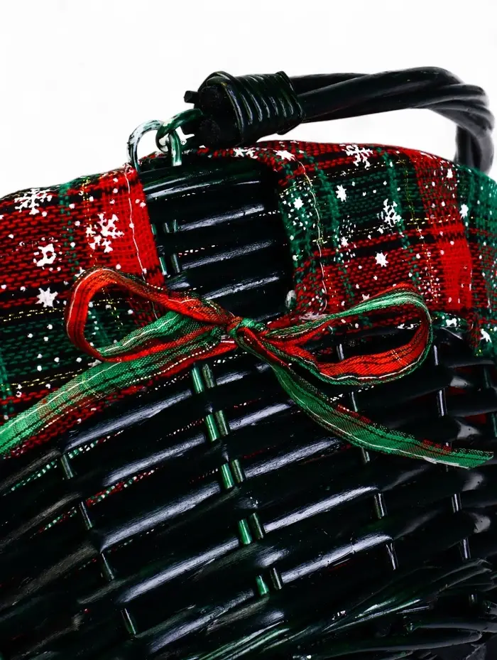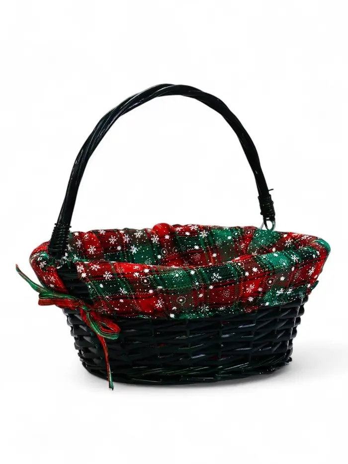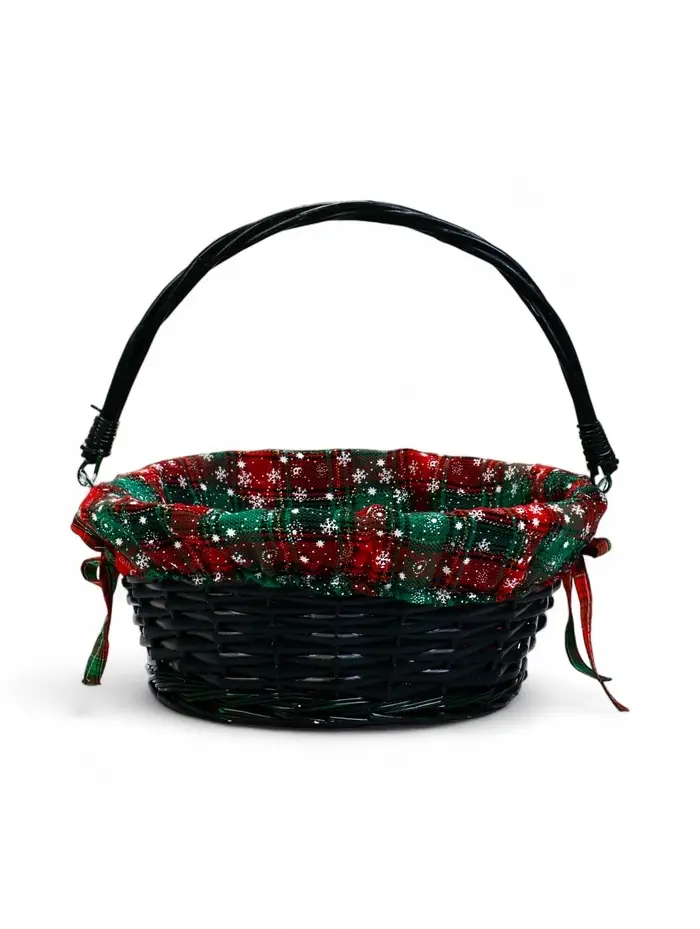 Корзина плетеная 32 х 32 х 14 см, ручка h=14 см зеленый НГ ткань