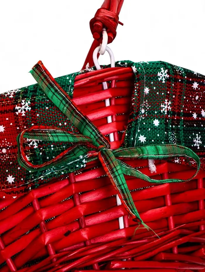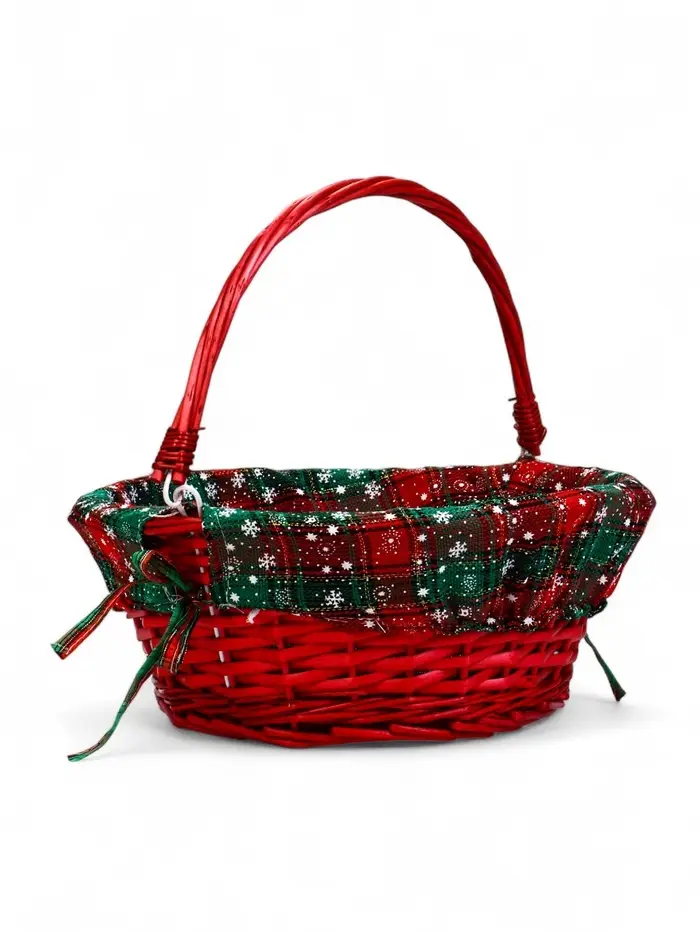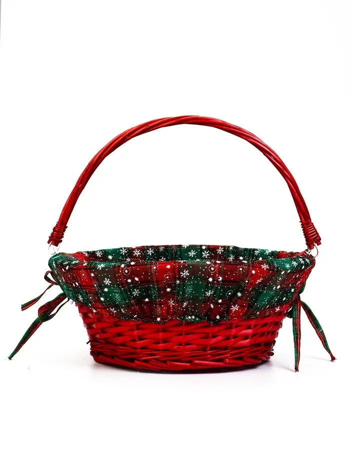 Корзина плетеная 32 х 32 х 14 см, ручка h=14 см красный НГ ткань