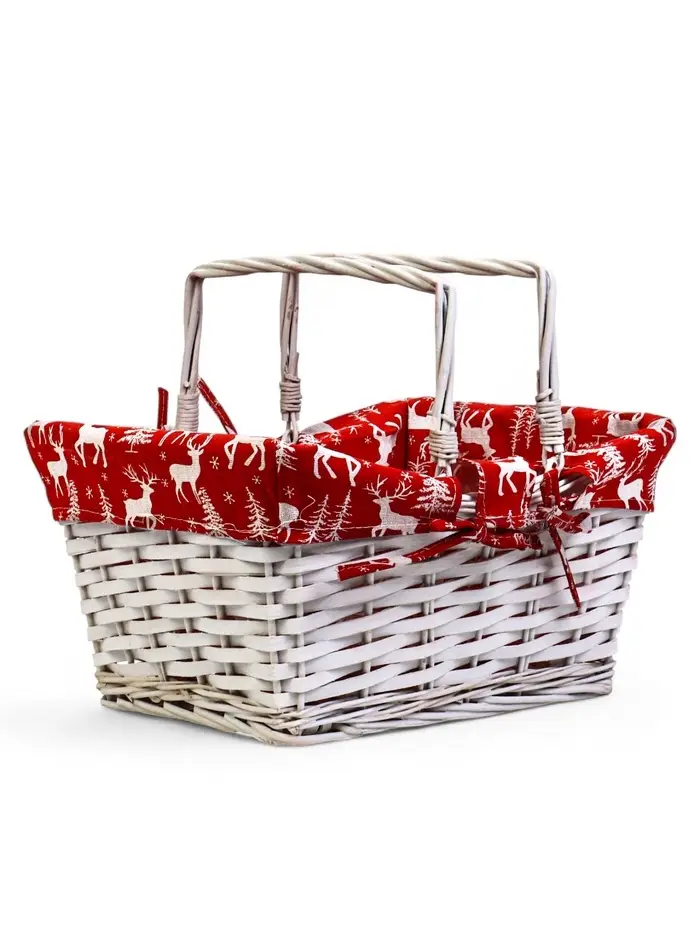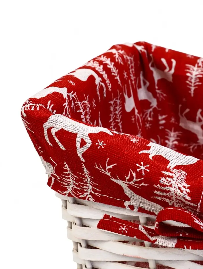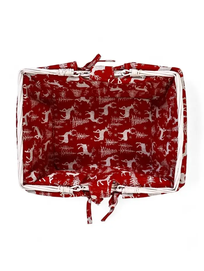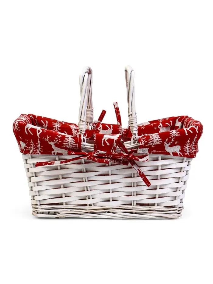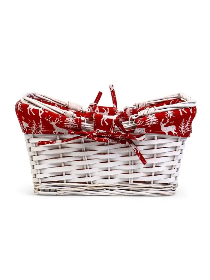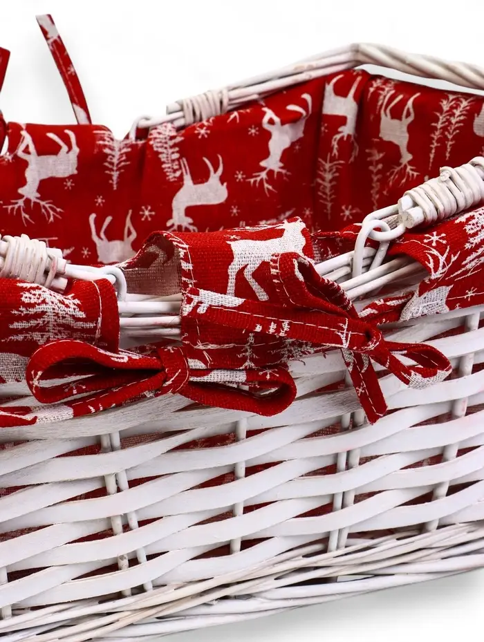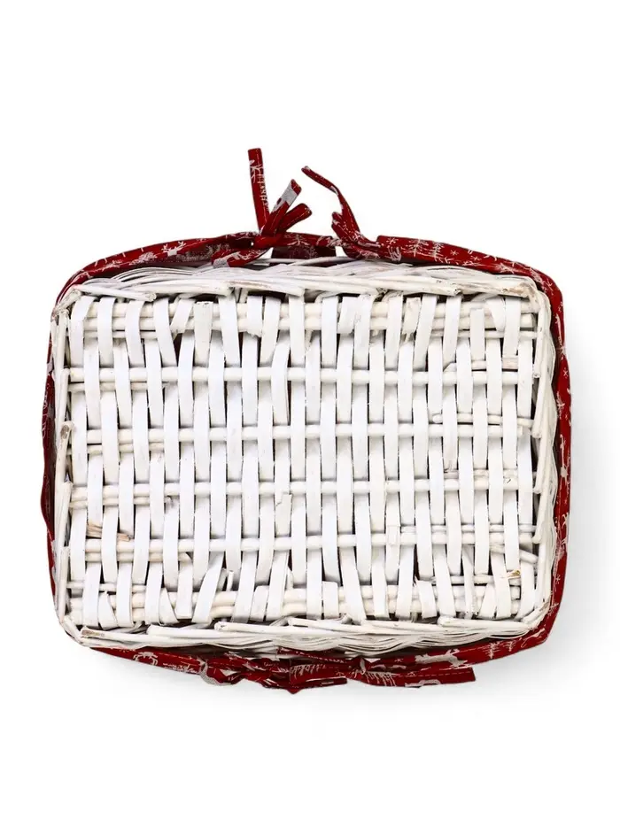 Корзина плетеная 37 х 28 х 18 см, ручка h=13 см белая, НГ ткань красный