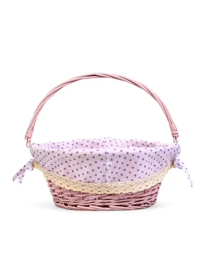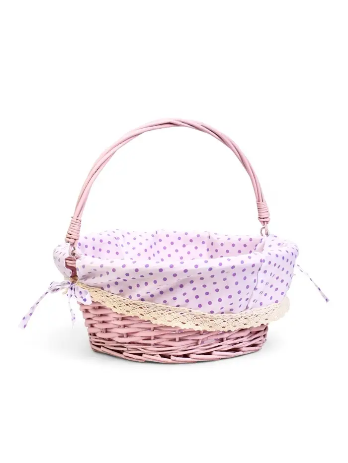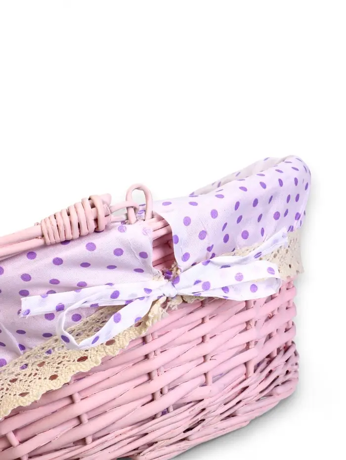 Корзина плетеная 32 х 32 х 14 см, ручка h=14 см розовый ткань