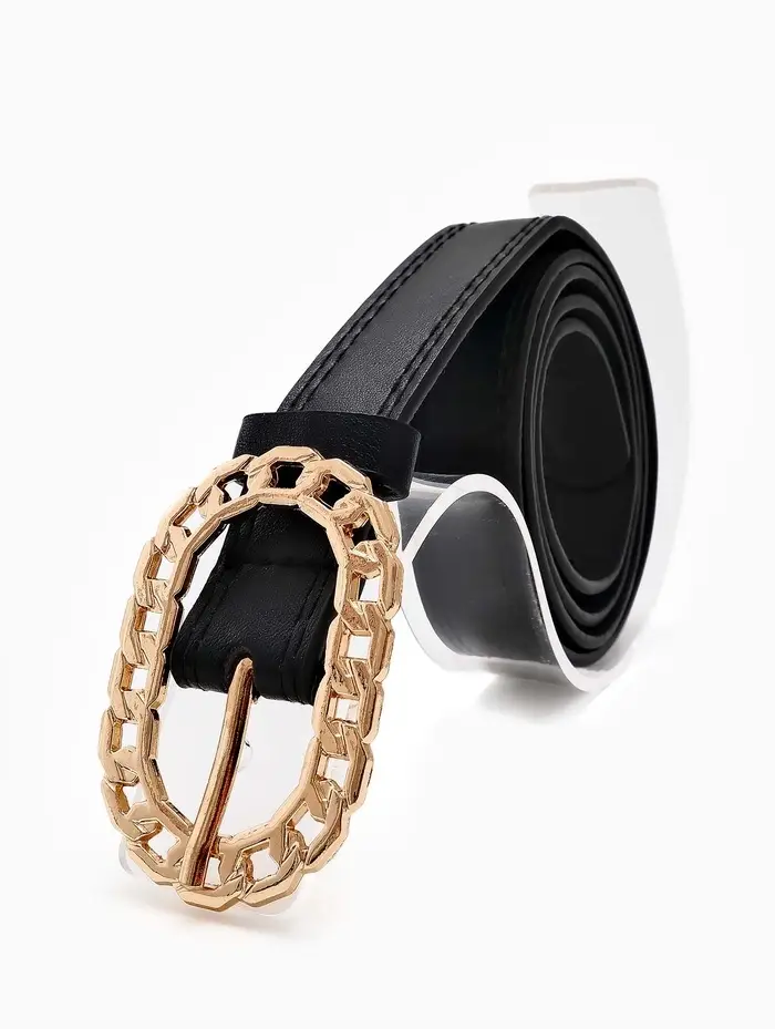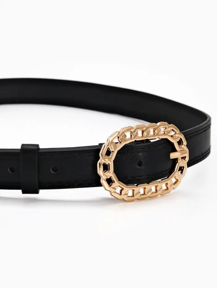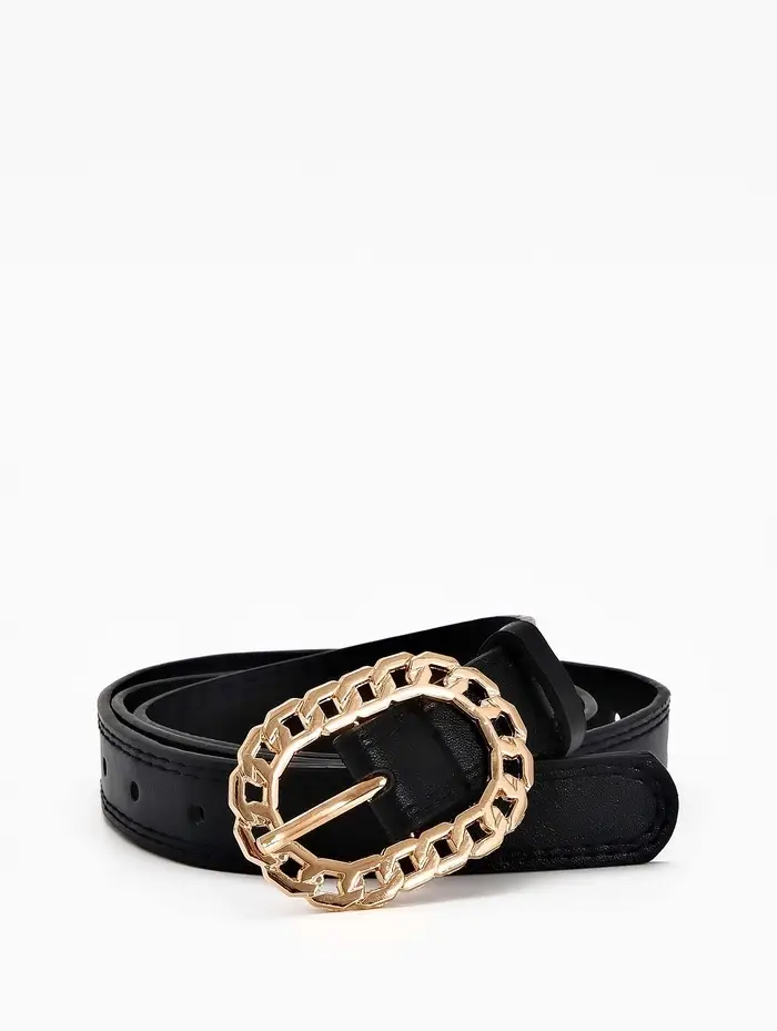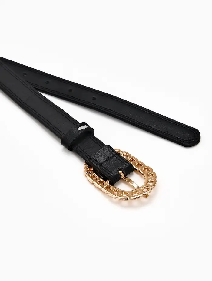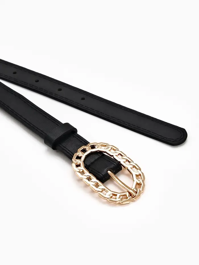 Ремень жен 04-01-01-01, Июнь2503, 2,5*0,3*110 см, без винта, пряж золото, 1 прокол, черный 1090312