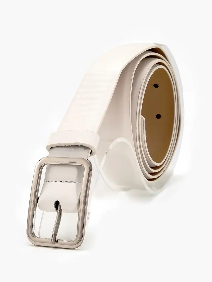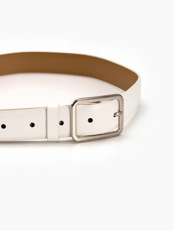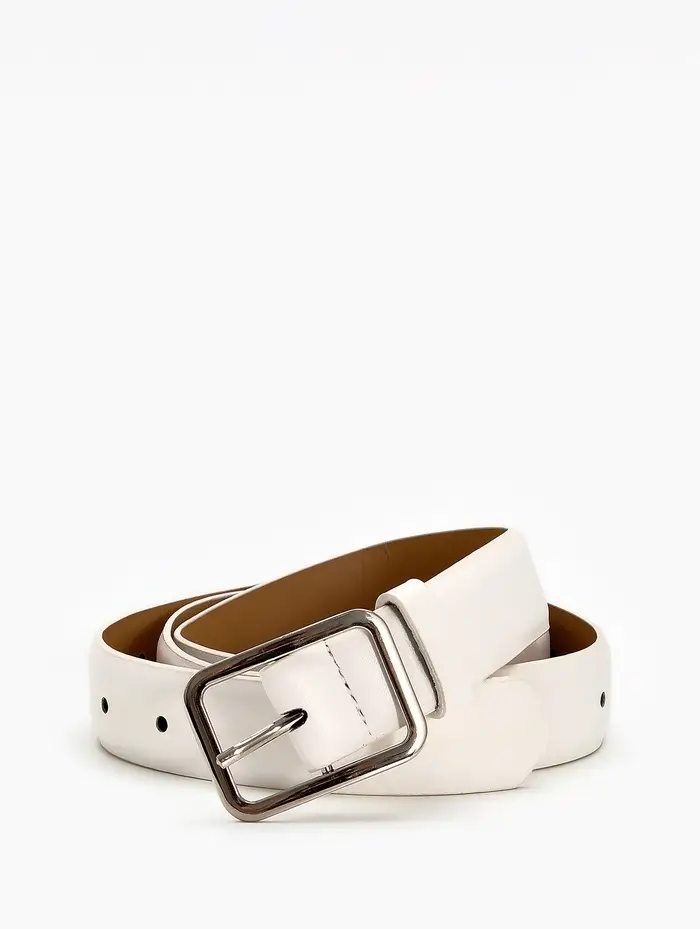 Ремень жен 05-01-02-01, Июнь2505, 3*0,3*110 см, без винта, пряж мат металл, 1 прокол, белый 109031