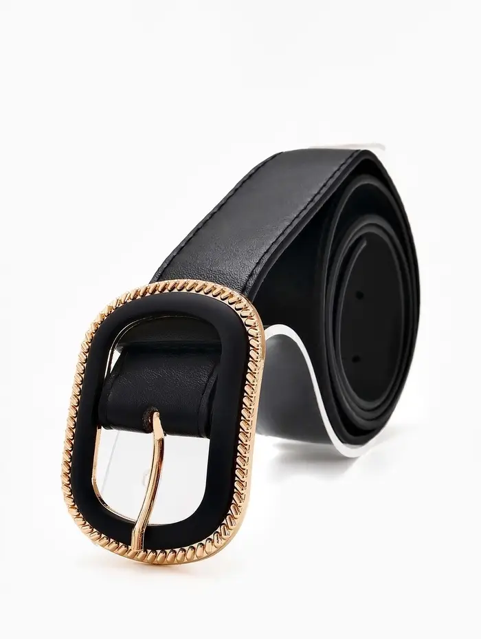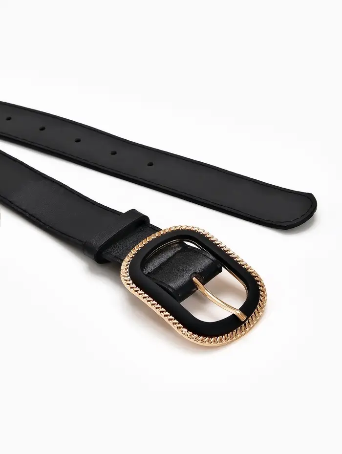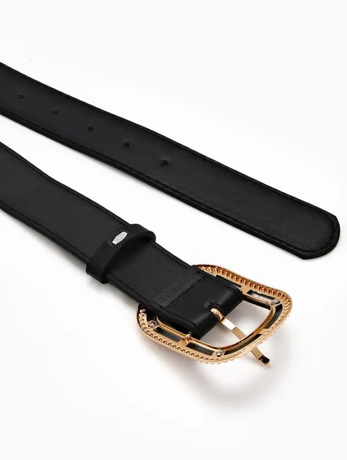Ремень жен 05-01-07-01, Июнь2507, 3*0,3*110 см, без винта, пряж золото+пласт, 1 прокол, черн 10903